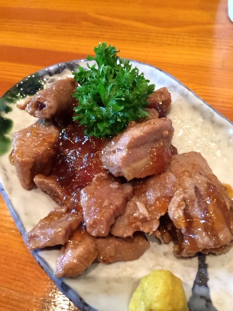 柔らかく煮込まれたマグロが程よい味付で酒がススム。