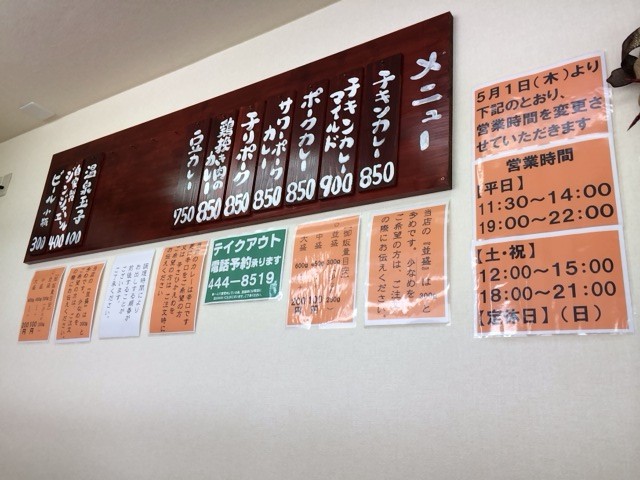 メニュー筆頭”チキンカレー”。