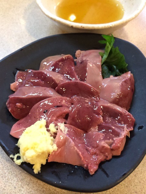 三河産若鶏の刺身”レバー(230円)”。