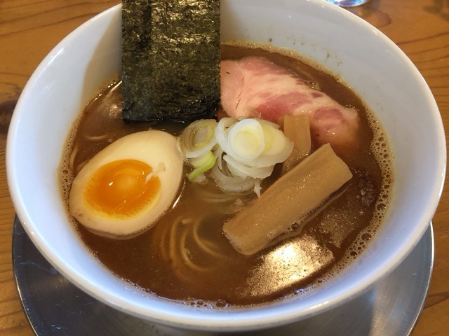 トッピングはチャーシューにメンマ、煮玉子、海苔、ネギ。