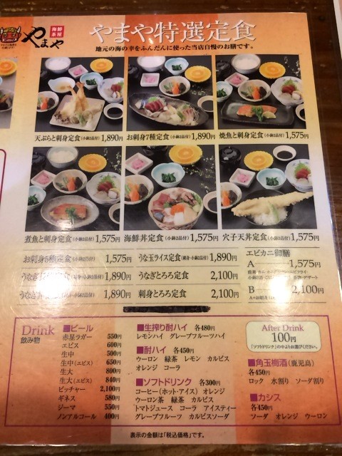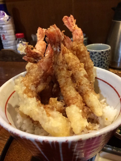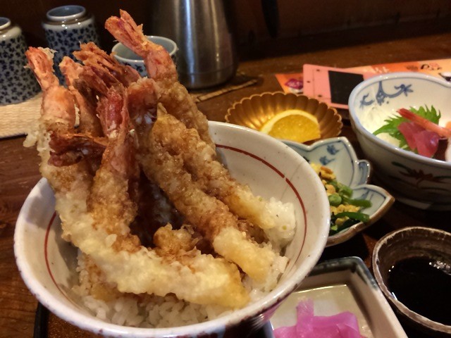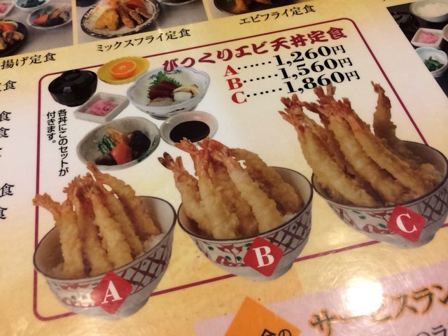 やまや@豊橋で、びっくりエビ天丼定食A。