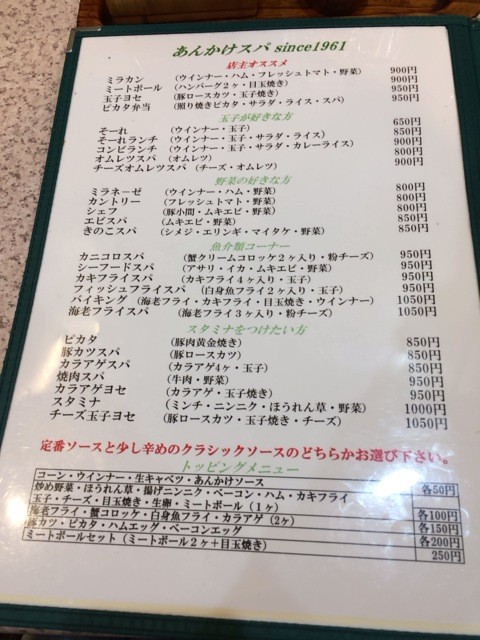 あんかけスパ各種がズラッと。