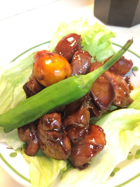 注文してから小鍋で温められる甘辛な鳥モツ煮。