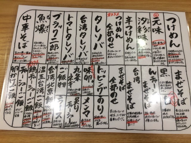 メインのつけめんのほか、タレソバ、まぜそば、中華そばなど。