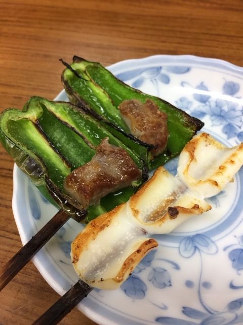 ”ピーマン、いか焼、やきとり(各110円)”。