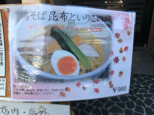 ”鶏そば昆布といりこの塩(900円)”。