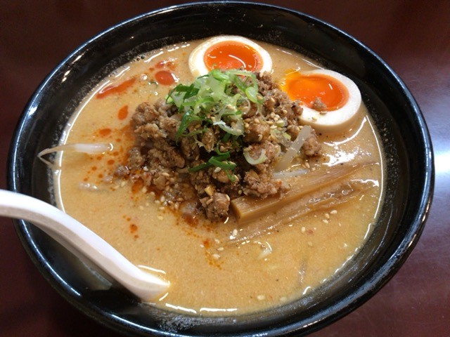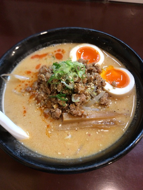 トッピングは挽肉にメンマ、モヤシ、味玉。
