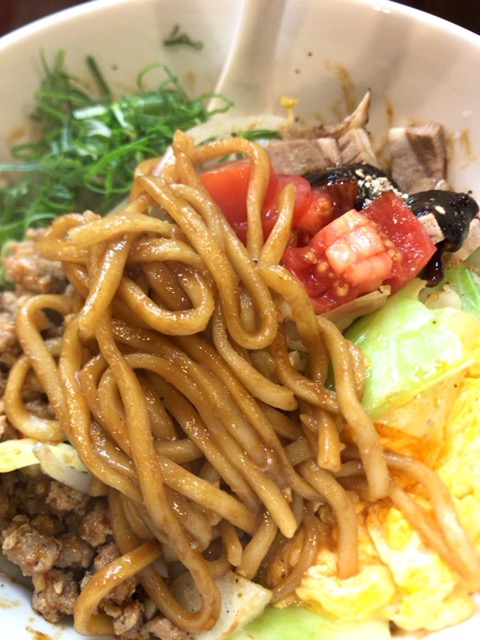 麺は甘めの八丁味噌タレが和えられた、
