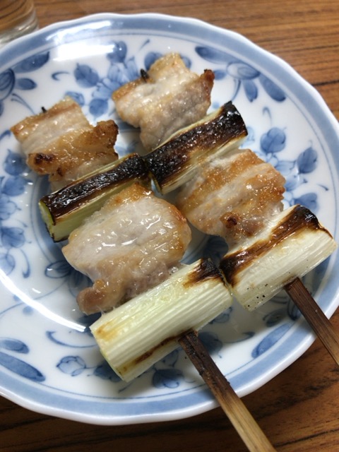 ”とん焼、ねぎま(各110円)”を2本づつ。