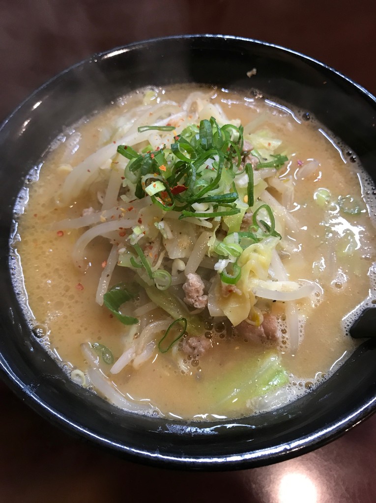トッピングは炒め野菜で挽肉、キャベツ、モヤシ。