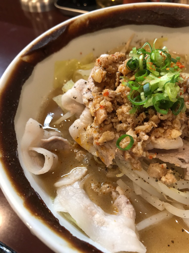 トッピングはキャベツ、モヤシ、豚バラに挽肉。