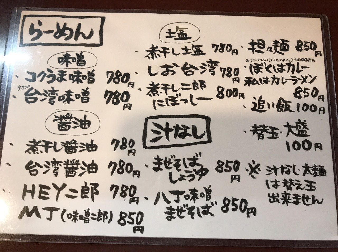 味噌、醤油、塩にカレーや汁なしなどメニュー豊富。