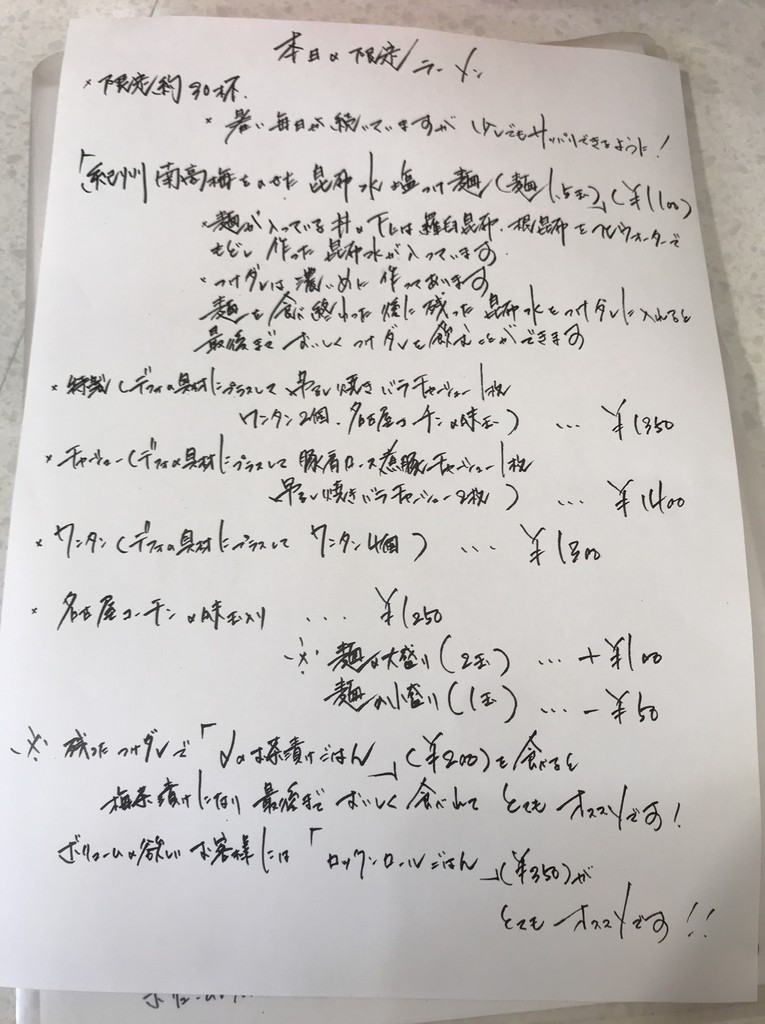 限定つけ麺メニューはこちら。