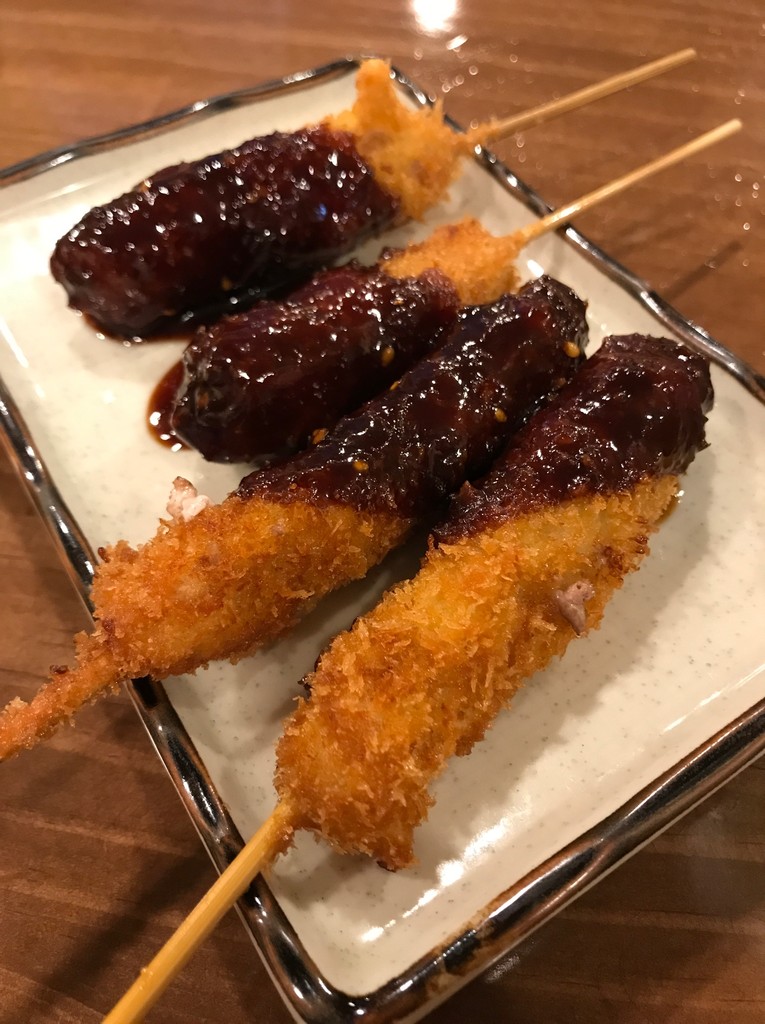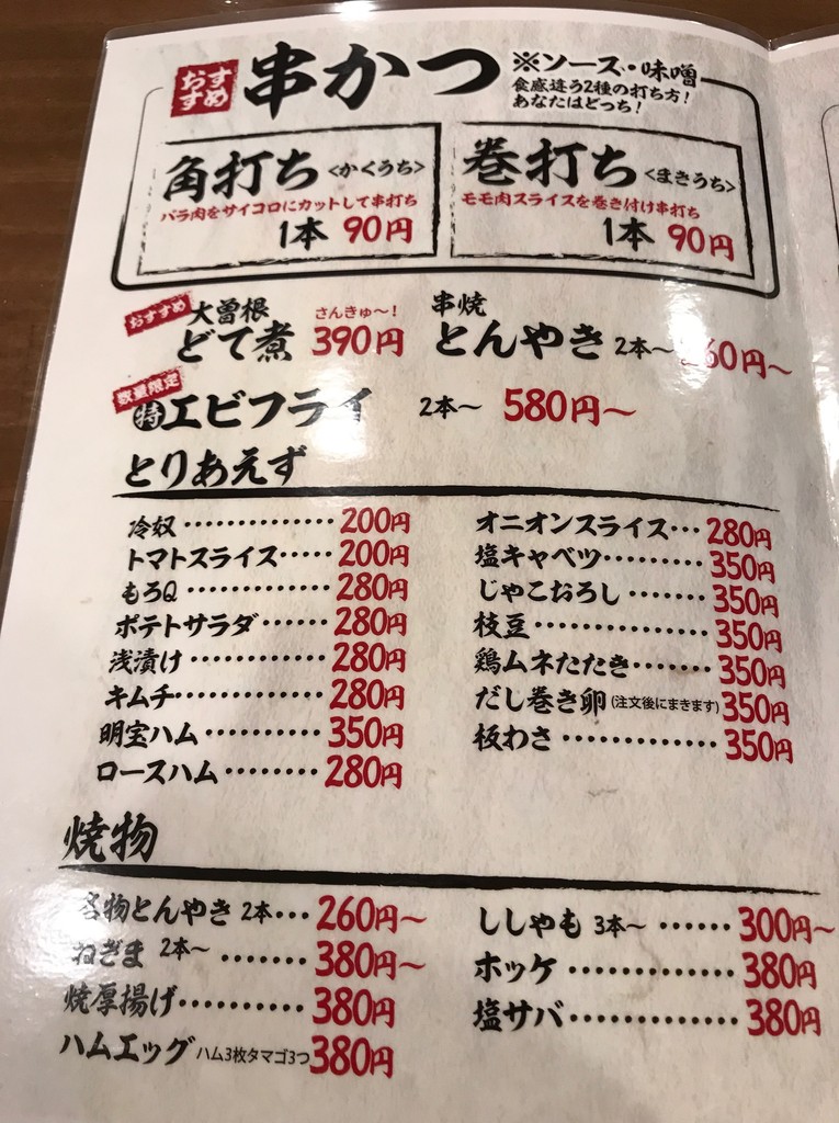 つまみ追加で”串かつ(90円/本)”。
