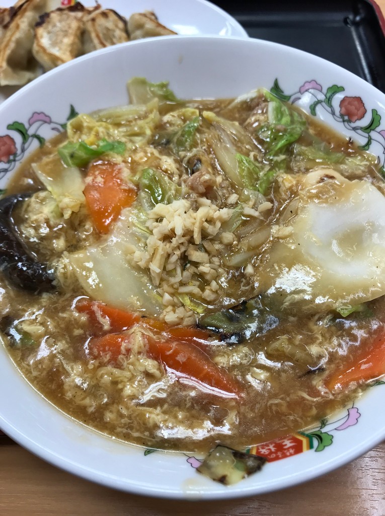 メインの五目あんかけラーメンに餃子、ライス小。