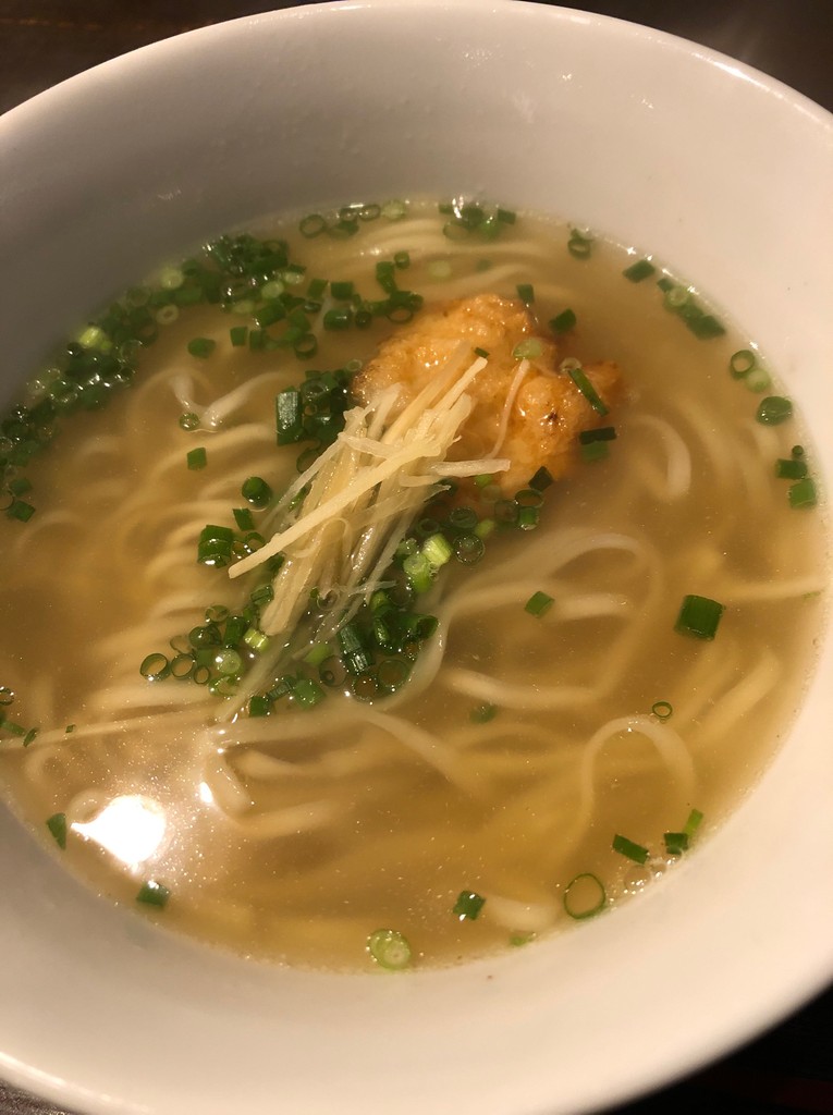 トッピングはかまぼこに生姜、ネギとシンプルに。