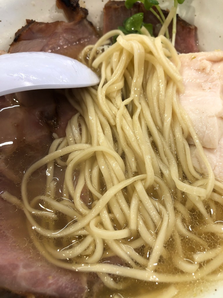 煮干と鶏のあっさりスープに細めの平麺。