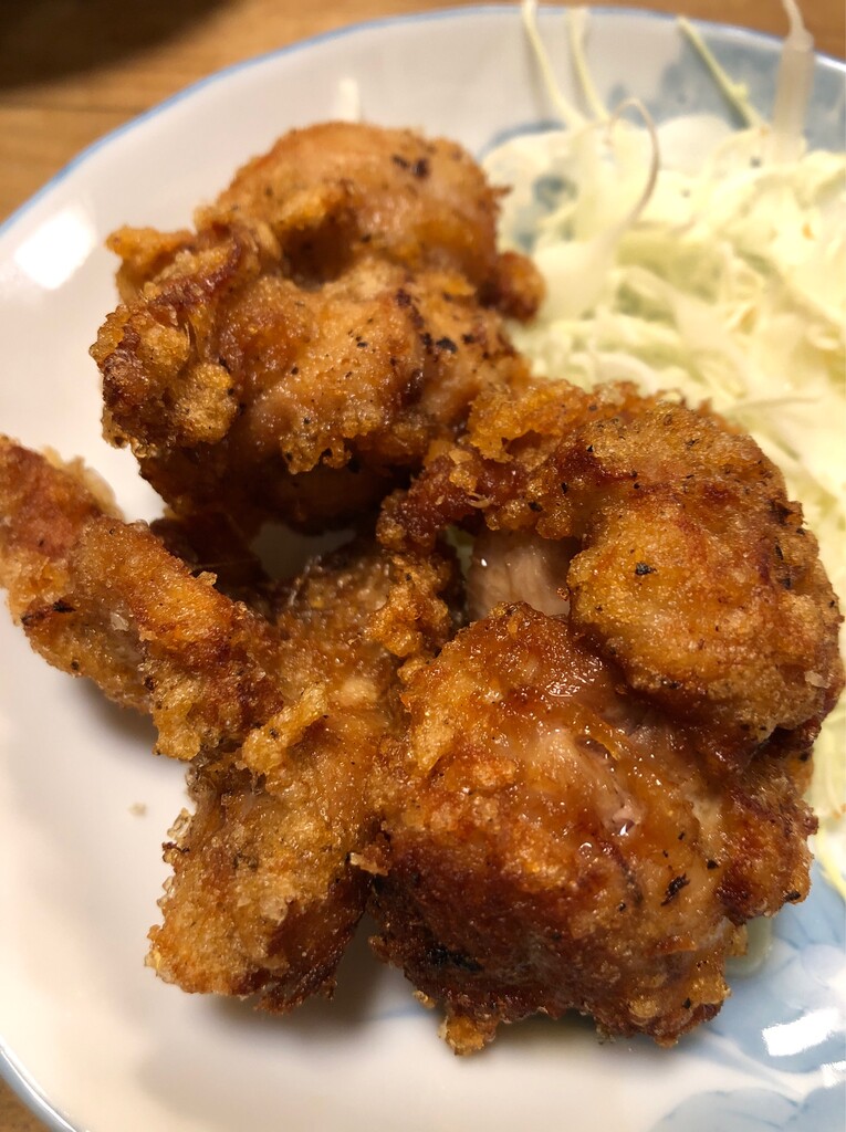 唐揚とマグロをちょっとつまんでビールのアテに。