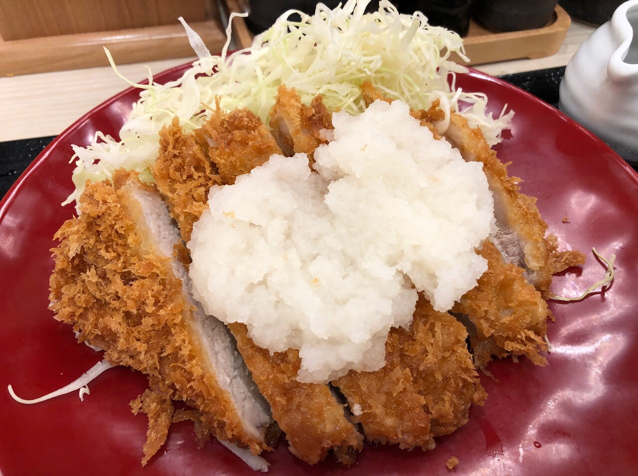 肉厚なトンカツはおろしでさっぱりと。