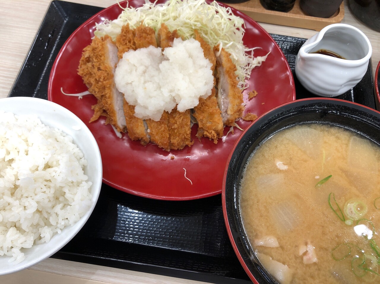 おろしカツにご飯と大ぶりとん汁。
