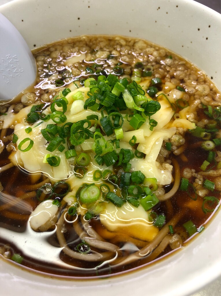 ガツンと醤油出汁にこってり揚げ玉&チーズが、