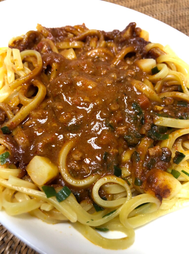 太めのもっちり麺に具沢山カレールー。