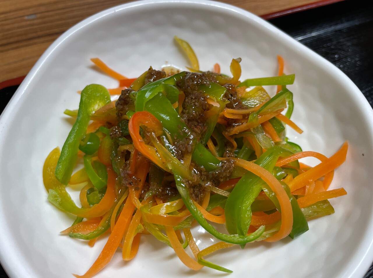 サラダはピーマンと人参。