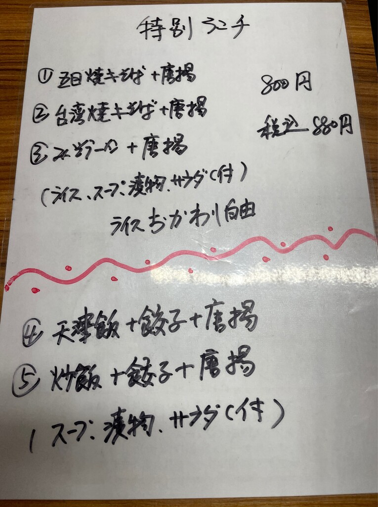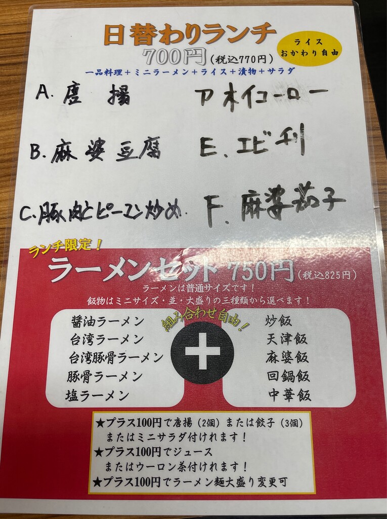 日替りに特別ランチ、ラーメンセットとメニュー豊富。