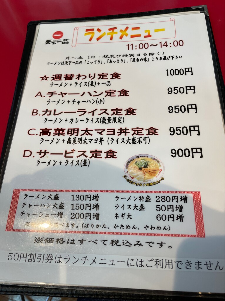 天下一品@名古屋・熱田で、Aランチ(チャーハン大)