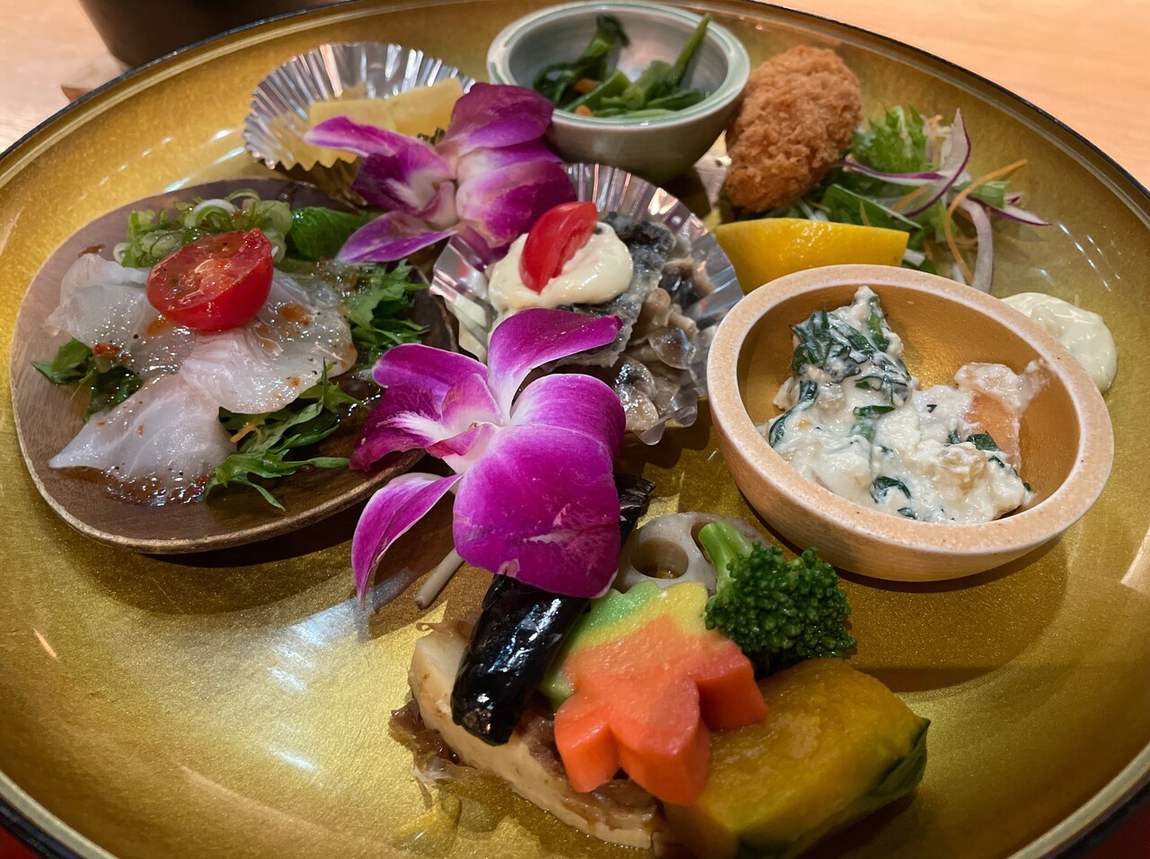 刺身にムニエル、牡蠣フライ、炊き合わせなど。