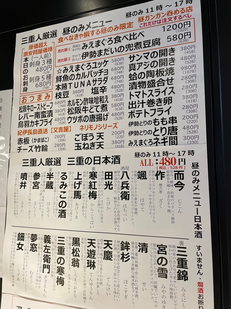 KITTE地下にある昼飲み出来るお店”三重人”。