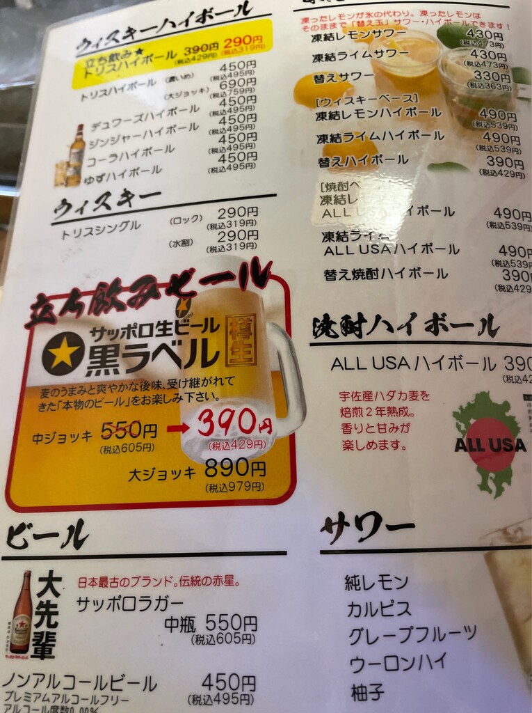 入口付近に立ち飲みエリアがあり、ドリンクがお得に。