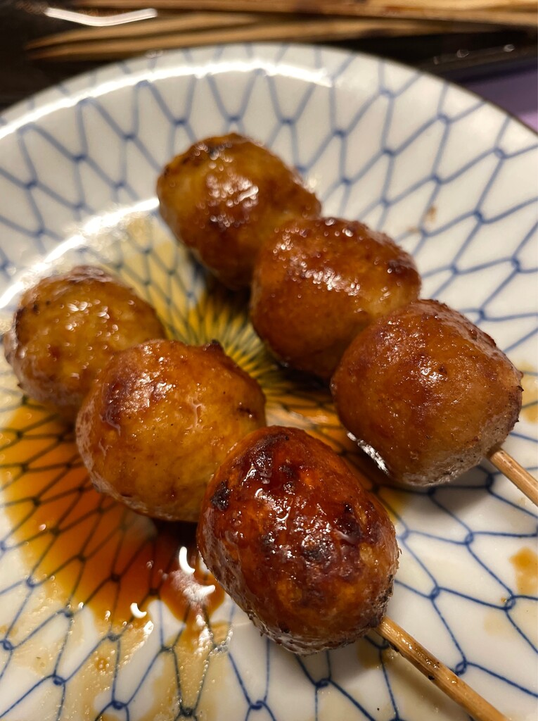 ”二級酒”を燗でお替りしつつ”とり玉(120円/本)”。