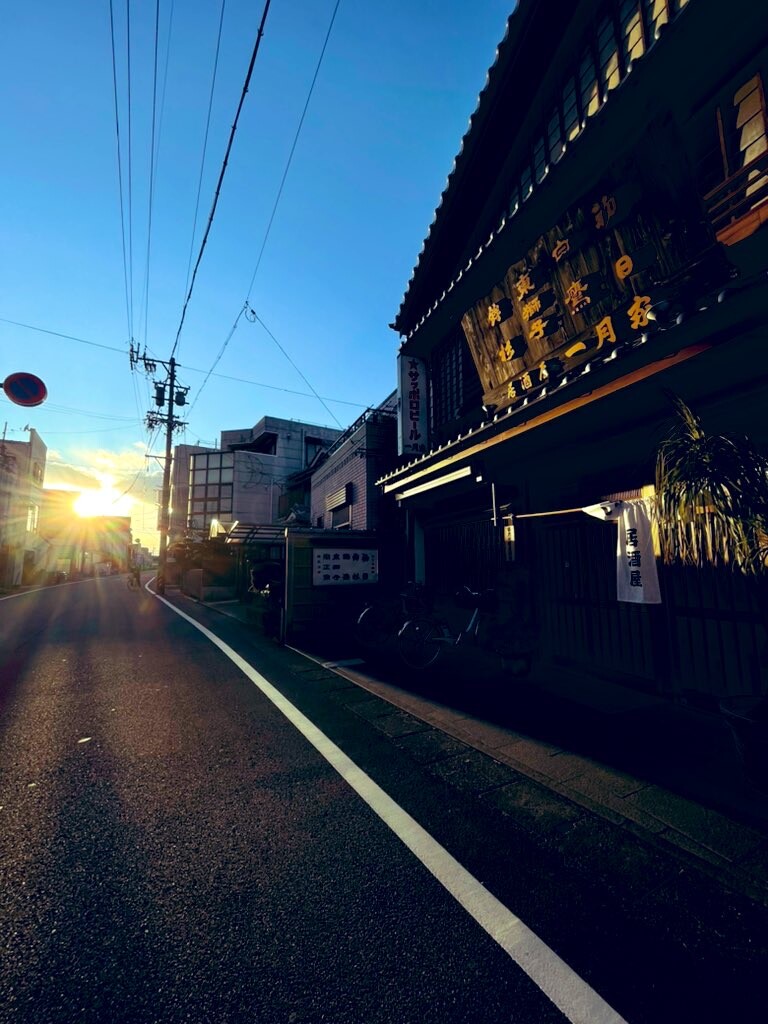 ちょうど陽が沈むところだ。