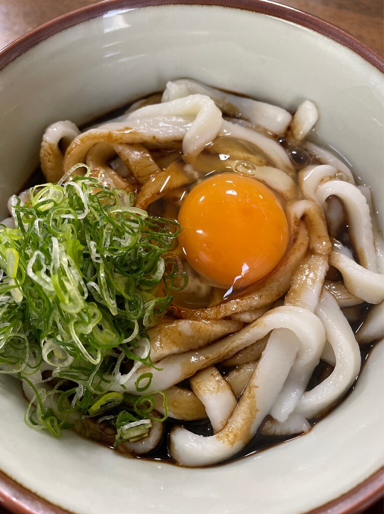 ちとせ@伊勢・宇治山田で、月見伊勢うどん。