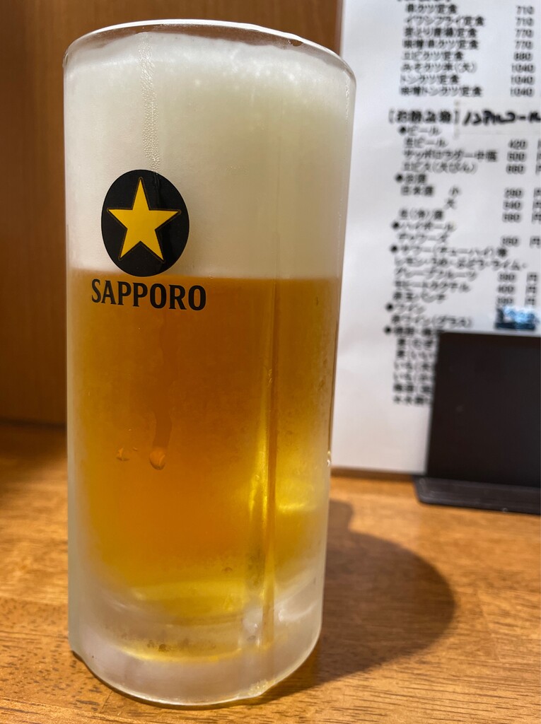 ”サッポロラガー中瓶(500円)”。