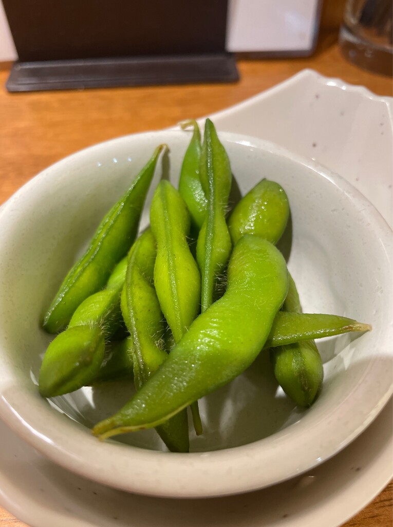選んだドリンクは生中。そしてすぐに枝豆が。