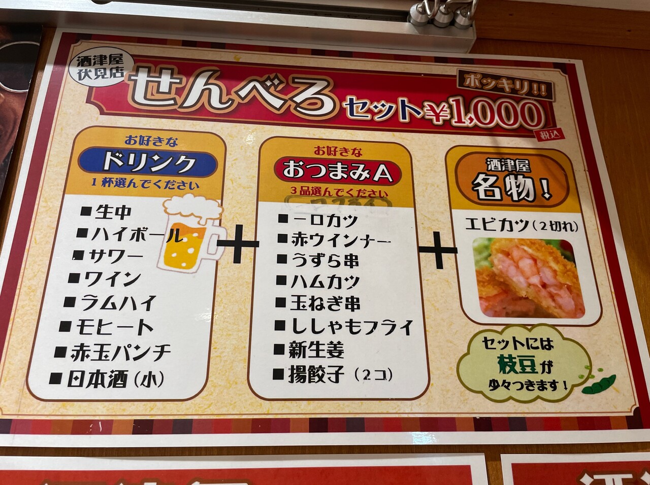 ”せんべろセット(1000円)”。