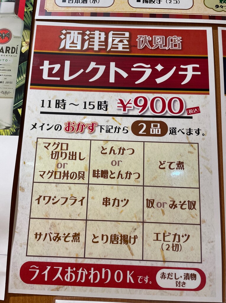 それでもセレクトランチにせんべろセットが。