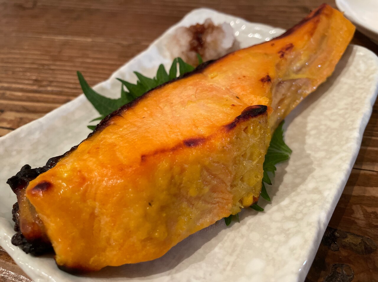 つまみ追加で”厚切鮭の西京焼(500円)”。
