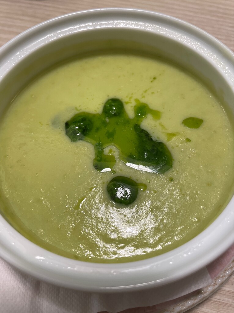 スープは緑豆の豆乳ポタージュスープ。