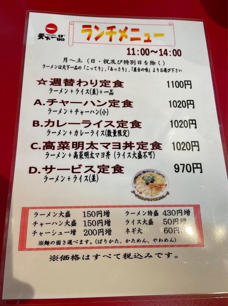 天下一品@名古屋・熱田で、Aランチ(チャーハン大)