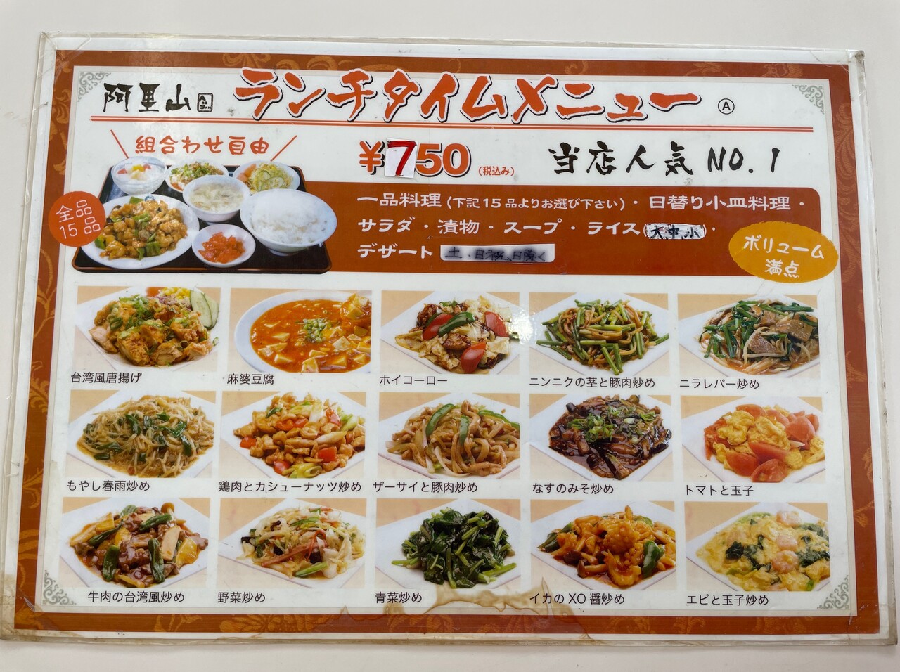 ランチメニューはこんな感じ。