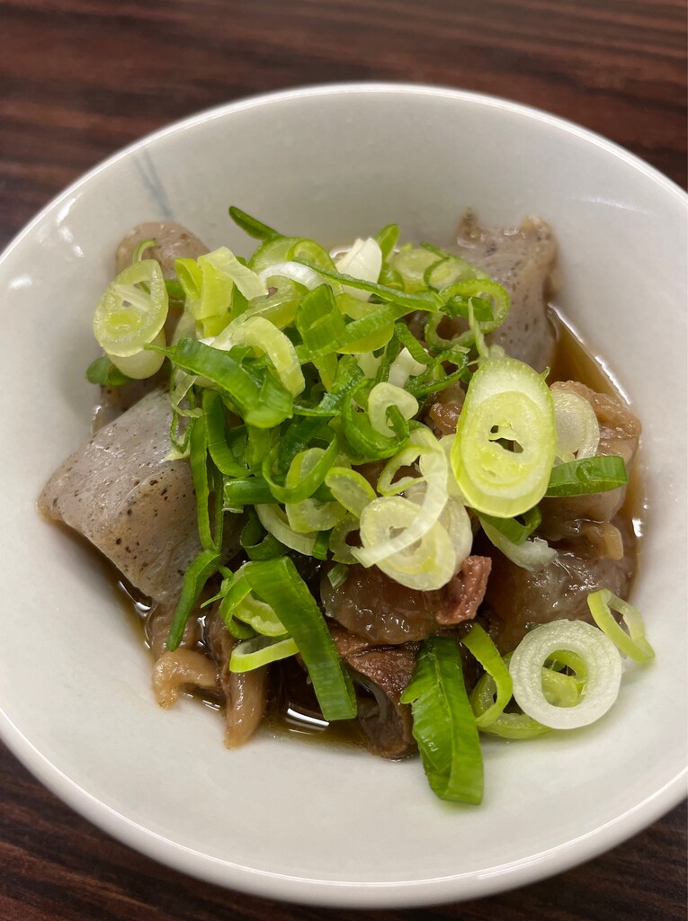 プリプリ牛スジとコンニャクが甘辛で。