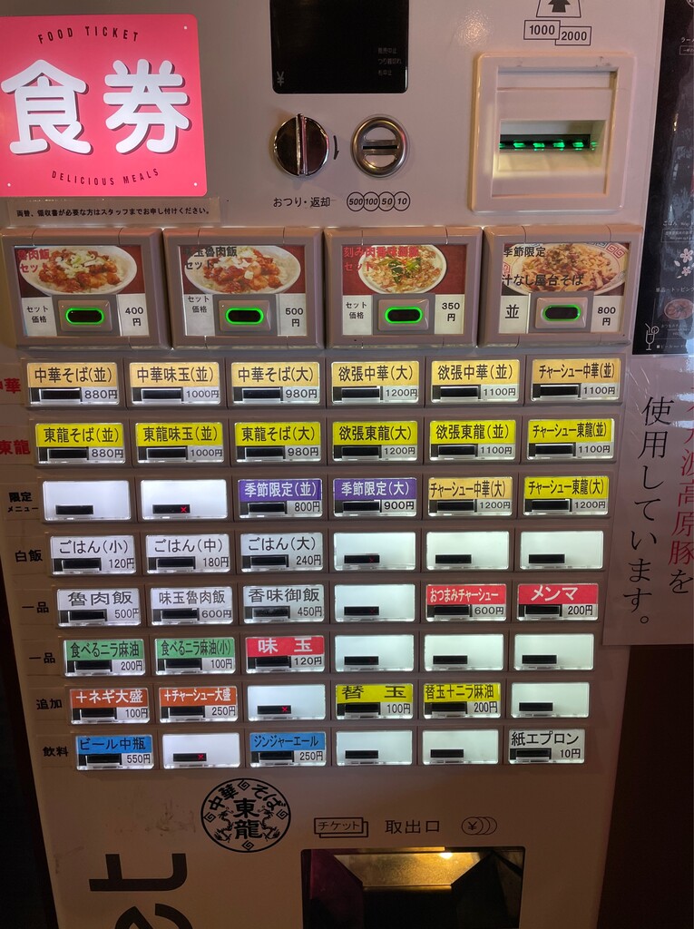 中華そばと東龍そばの2本立てに、
