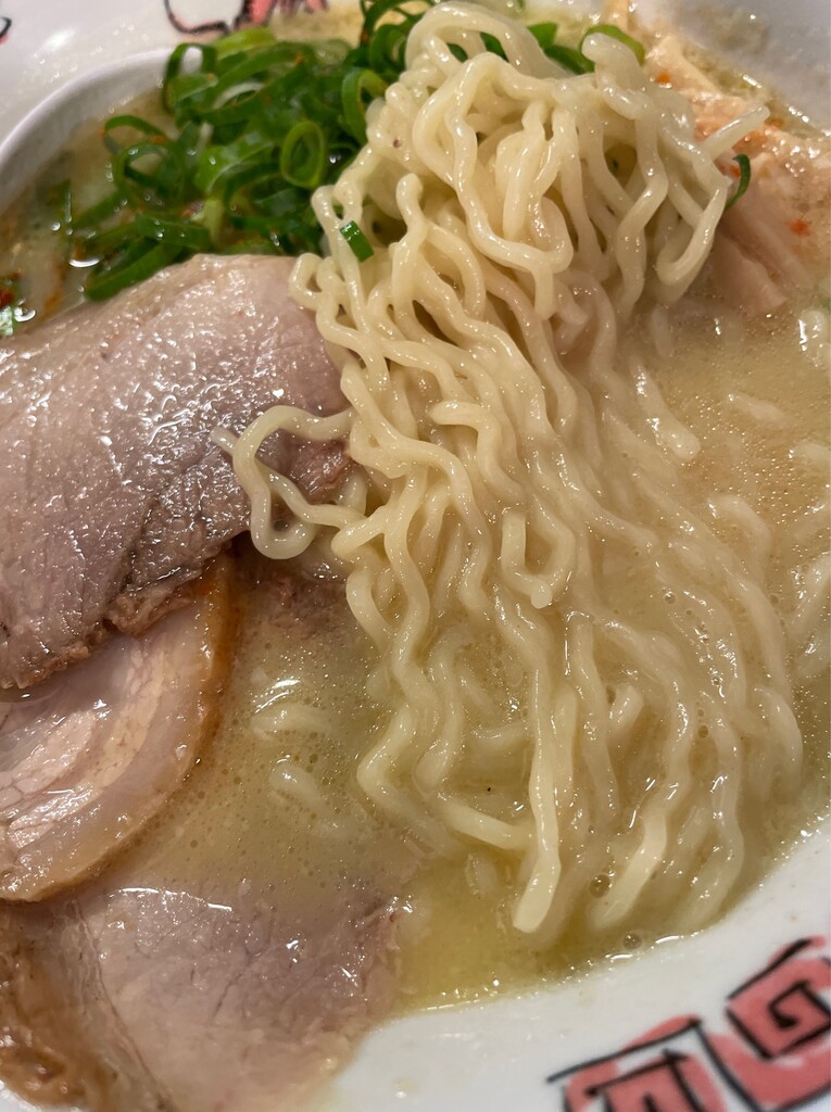 ちぢれ麺がクリーミーなスープ絡んでいい感じ。