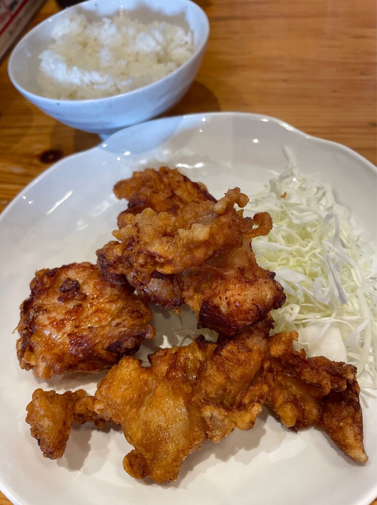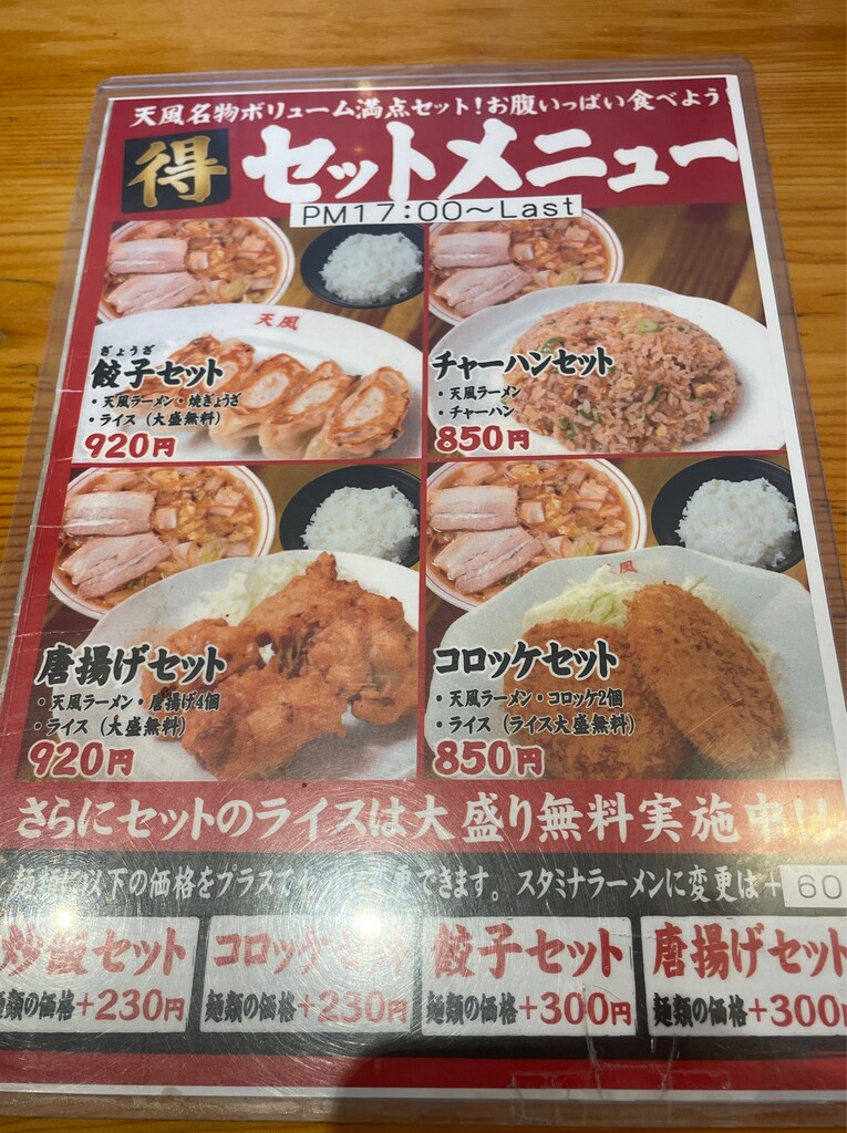 天風@豊川・赤坂で、スタミナラーメン唐揚セット+ウーロンハイ。