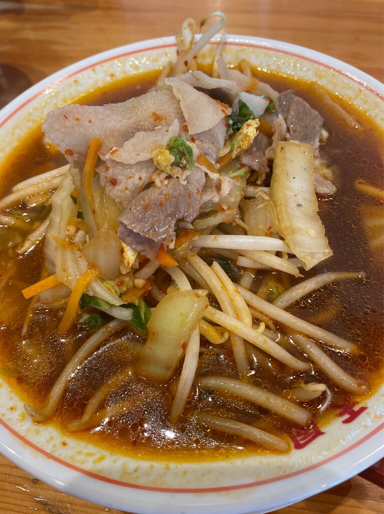 甘さのあとにピリ辛がくるスープにしっかり細麺。