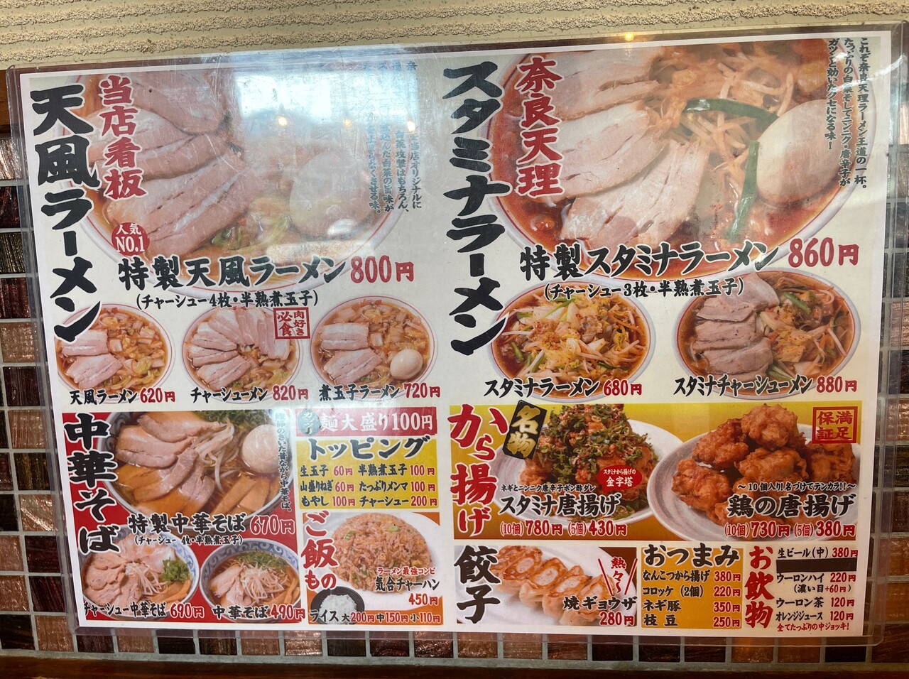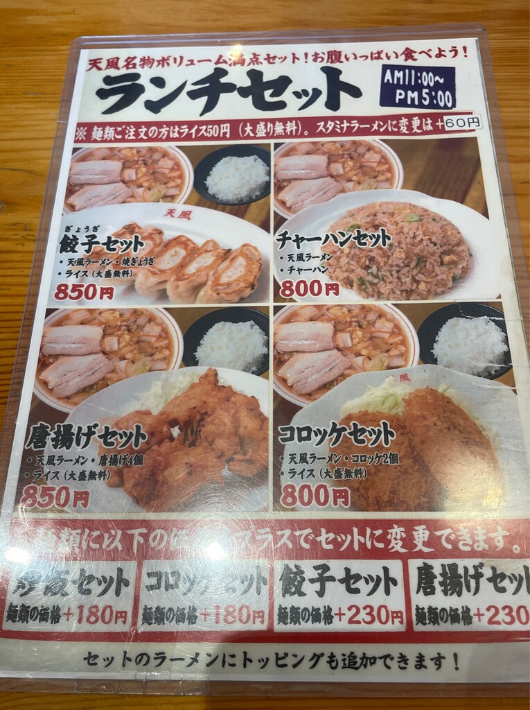 天風ラーメン、スタミナラーメン、中華そばの3本立て。