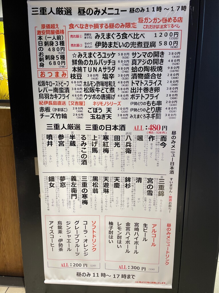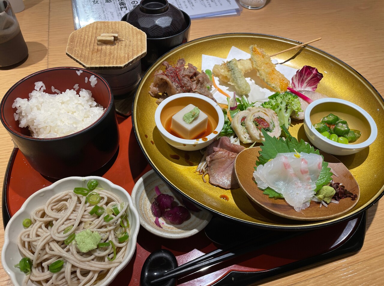 三重人@名古屋・名駅で、三重いなべ蕎麦と三重夏の山海彩りランチ+日本酒ほか。